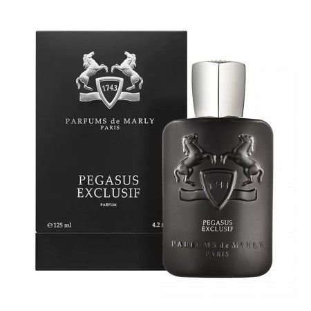 Pegasus Exclusif de Parfums de Marly, con características distintivas de serena virilidad y poder estimulante, esta exclusiva creación encarna la sensualidad de la apreciada vainilla, combinada con un toque oriental de ámbar, sándalo, oud natural y madera de guayaco. Todo esto, combinado con notas de corazón florales de jazmín, lavanda, almendra amarga y geranio, presenta un buen equilibrio de frutas y especias, incluyendo bergamota, pimienta rosa, cardamomo y heliotropo.